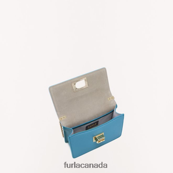 The Furla 1927 mini crossbody bag is made of elegant textured leather with leather strap featuring chain inserts. Perfect to wear also as a shoulder bag; it is characterised by the metal turnstile closure with Furla logo; which makes it practical and functional.