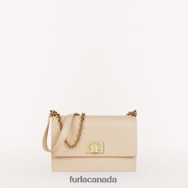 The Furla 1927 is a small crossbody bag made of textured leather with leather strap featuring chain inserts. Perfect to wear as a shoulder bag; it features an elegant metal turnstile closure with Furla logo. The bag comes with an open pocket on the back for an easy access to your belongings.