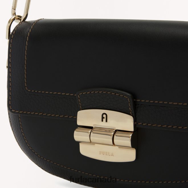 The saddle-bag style of this Furla Club 2 crossbody is a new interpretation of an iconic bag from the Furla archives. Styled in soft and smooth leather and trimmed in grained leather, the rounded lines hold a sophisticated appeal, making it the perfect choice for a day piece. It can be worn on the shoulder or crossbody, and it's roomy enough inside to hold all your small essential items.
