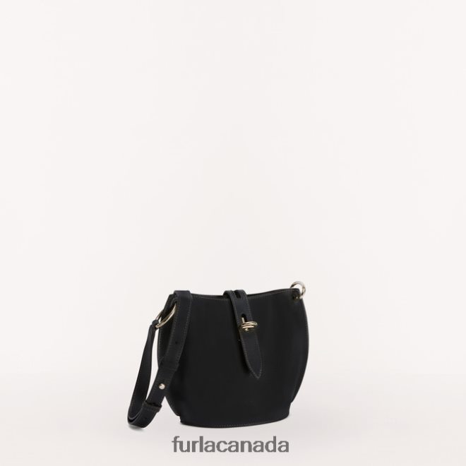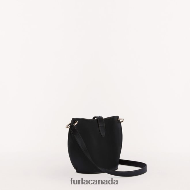 This Unica Furla mini crossbody is a unique design inspired by the bucket bag, with its rounded shape and soft, curved sides. Styled in soft and smooth calf leather, it is bound to become your faithful everyday companion, and attract attention with its understated look. Ideal for carrying your personal belongings with its rigid bottom, it can be worn crossbody or on the shoulder.