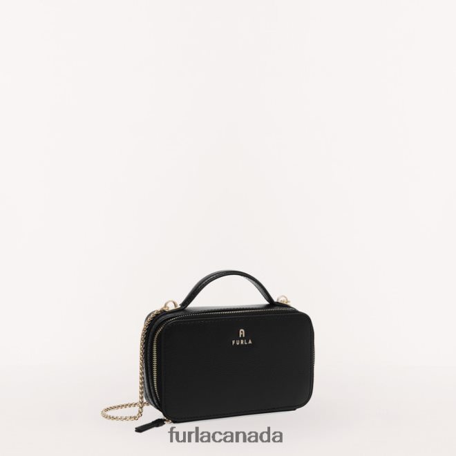 Furla Camelia is a crossbody bag made of printed leather. The bag can be carried by hand or worn on the shoulder thanks to the fixed chain strap. The mini Furla lettering with the Arch logo punched on the front completes the bag.