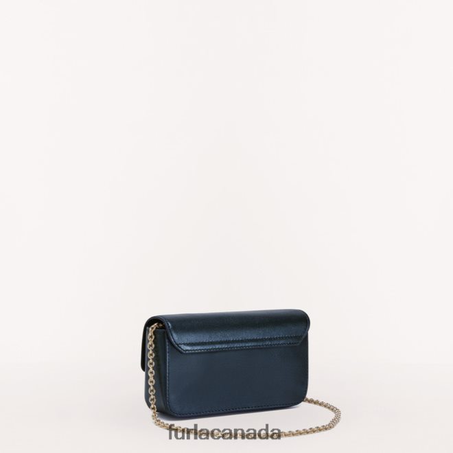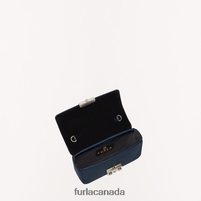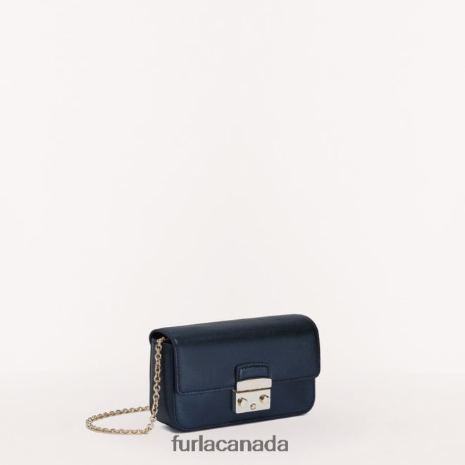 This Furla Metropolis mini crossbody is the epitome of elegance. With the shiny finish of its smooth metal calf leather, it adds the perfect touch to light up any outfit. Whether you carry it as a clutch or wear it crossbody, this little treasure chest is just the right size to hold the most important things.
