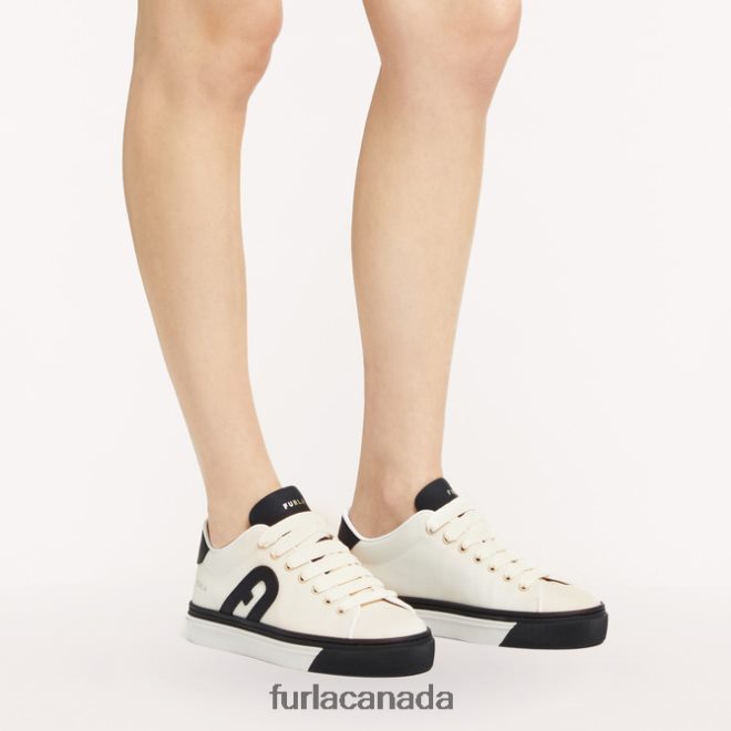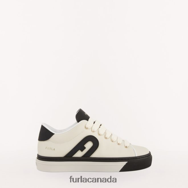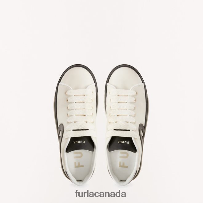 Furla Joy is a lace-up trainer made of colour-block calfskin leather with a rubber coating. The shoe stands out for the custom Arch logo stitched on the side. A comfortable and practical shoe to wear throughout the day.