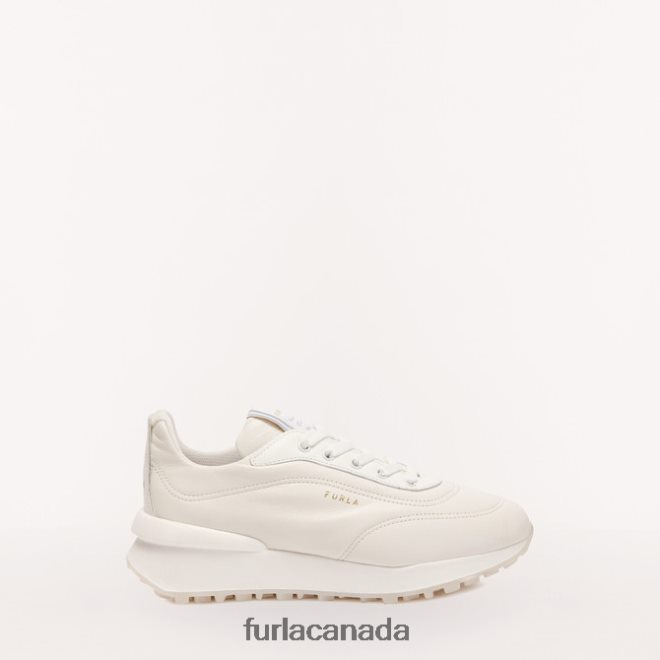 Furla Nuvola is a running trainer with a padded upper made of calfskin and sporty nappa leather. Comfy to wear all day long, it has a chic and feminine design. The front tongue personalised with the grosgrain tag and the Nuvola symbol written in several languages adds a unique touch to the model.