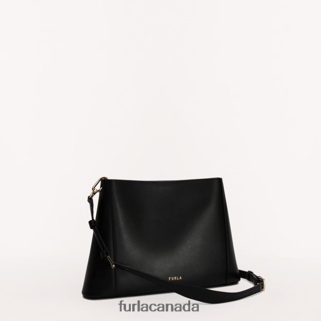 This sleek and elegant design is the Furla Fleur shoulder bag, perfect for keeping your essentials close at hand. The distinctive minimalist trapezoid shape is crafted from calf leather, smooth and soft to the touch. The additional adjustable and removable strap affords it the versatility of being worn crossbody, or on the shoulder.