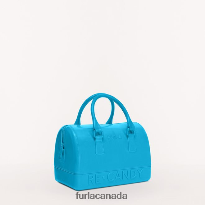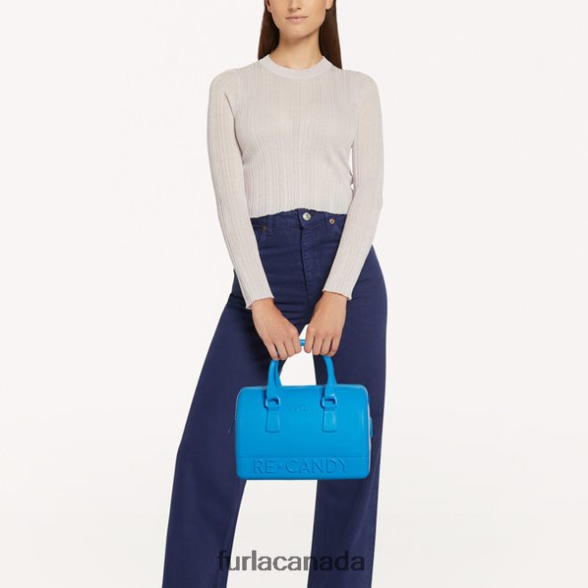 Featuring two handles, the model is embellished with matching recycled ABS details. With a circular production logic lying behind it, the Furla Candy is a must-have unique accessory to complete your look during your free time.