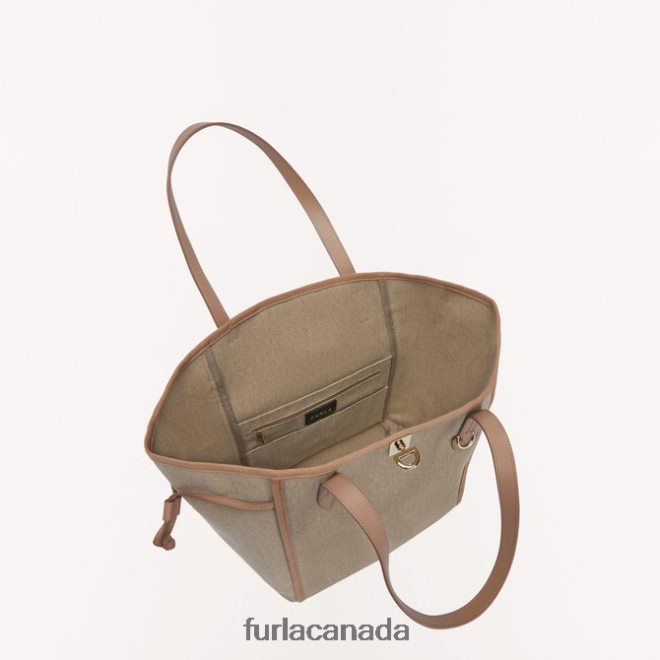 This Furla Net tote is the perfect summer carryall. Its spacious size allows you to stash everything you need inside, and its practical long handles mean you can carry it by hand or wear it on the shoulder. Crafted from lightweight canvas fabric with a luxurious grained leather trim, it is bound to become the must-have of the season.