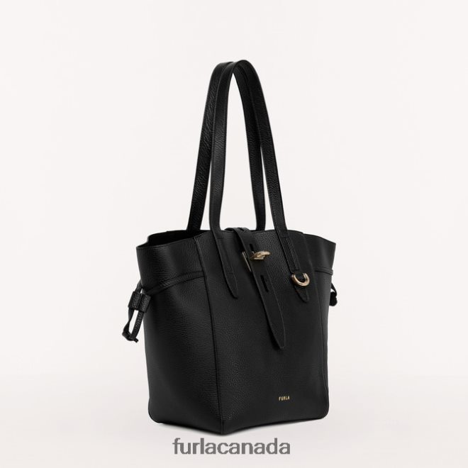 The Furla Net tote bag in grained leather comes with handles to wear it also as a shoulder bag. It stands out for the peculiar turn lock closure with oval holes details on the leather lace. With side leather laces with drawstring for fit regulation; it ensures a perfect organization of your belongings. The accessory is enhanced by the gold punched Furla logo.